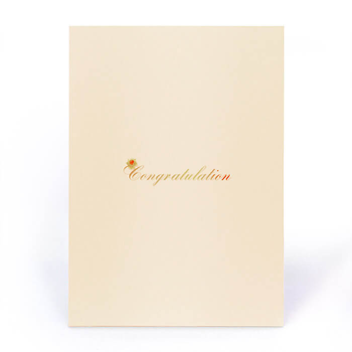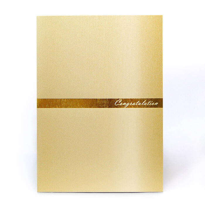 中央のゴールドのラインは金箔押しで仕上げられており、“Congratulation”の文字をさらに華やかに演出します。