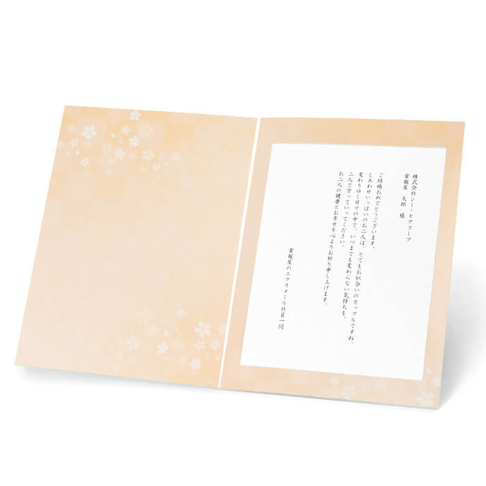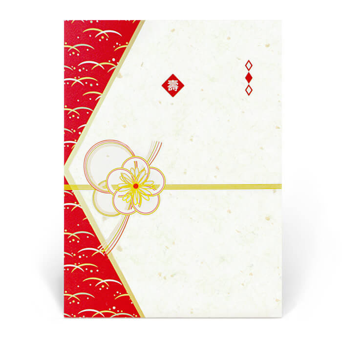 まるで豪華な金屏風や艶やかな着物のような、大小さまざまな花が美しく舞う模様をデザインしました。「祝」の文字は金の箔押し加工を施し、表面は華やかに輝き、中面は優しく穏やかな色合いです。滑らかな手触りのカードで、結婚や桜咲く合格・入学・卒業などあらゆるお祝い事に華をそえてくれます。