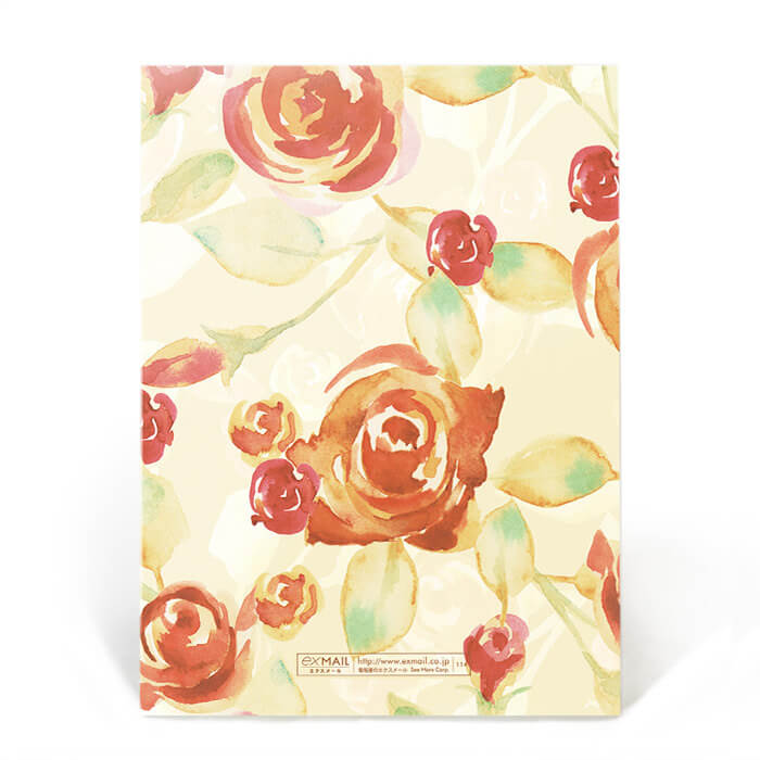 暖かな色合いのバラと、繊細なラインを描くゴールドの箔押しが、煌びやかでエレガントなデザインのカードです。ヘアーライン模様のエンボスがある質感のなめらかで上質な手触りで、どことなくアンティークな雰囲気を感じさせます。特別なお祝いや賀寿祝い・結婚記念日など、おめでたいシーンに最適です。