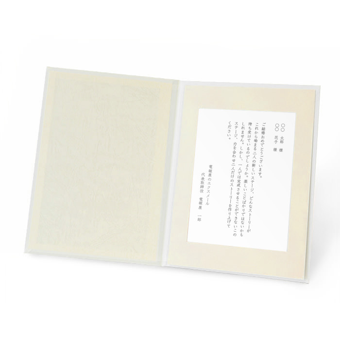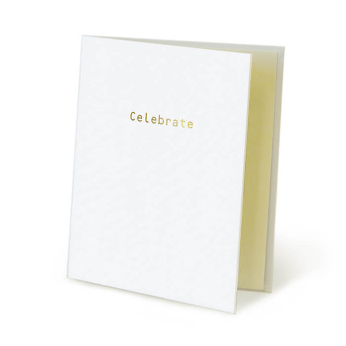 ゴールドで箔押しされた“Celebrate”の文字とホワイトのカードが、上品で清らかな印象を与えます。ウエディングドレスをイメージさせる滑らかな手触りの純白の布地を使用しており、結婚祝いなど思い出に残るシーンに是非お使いください。フォトフレームとしても末永く愛用いただけます。