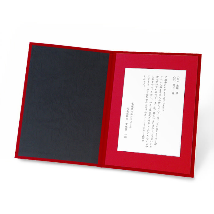 鮮やかな真紅の布地の外面と、落ち着いた黒の中面とのコントラストがとても印象的なカードです。