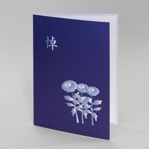 シルバーで書かれた“悼”の文字と三輪の菊の花