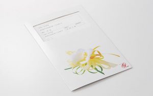 一輪の胡蝶蘭に、贈り物の意を示すリボン