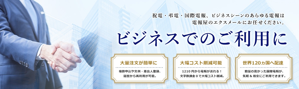 日本と世界の主要120ヵ国へ、速やかに電報をお届けします。
