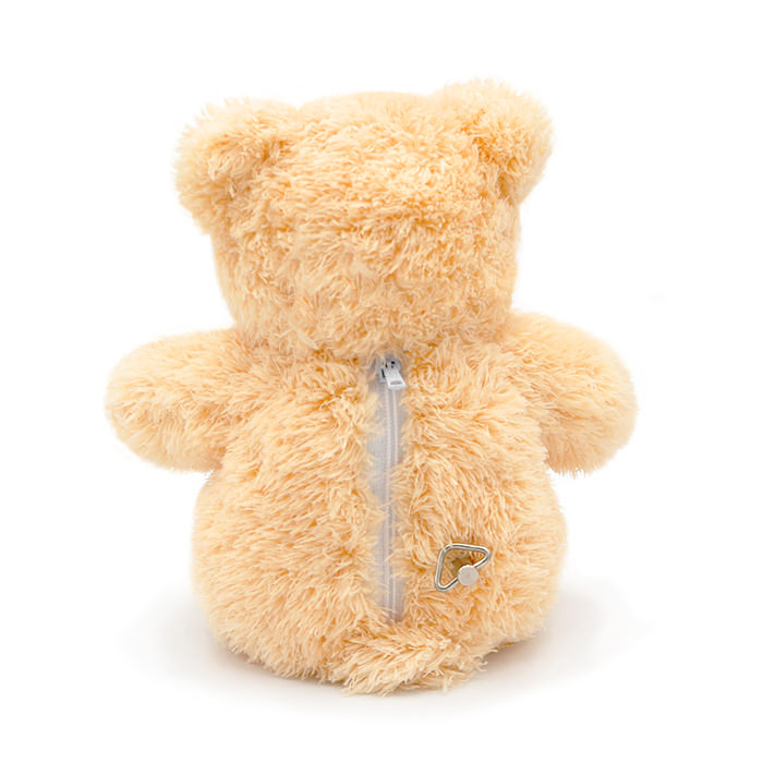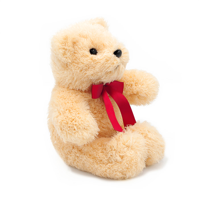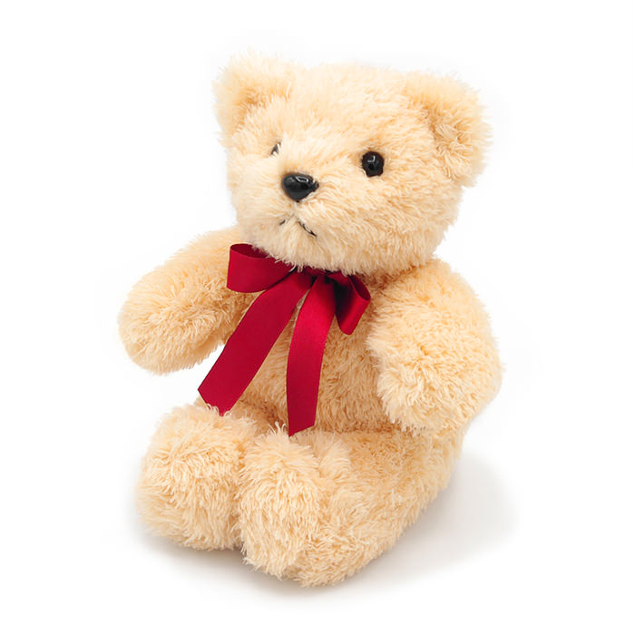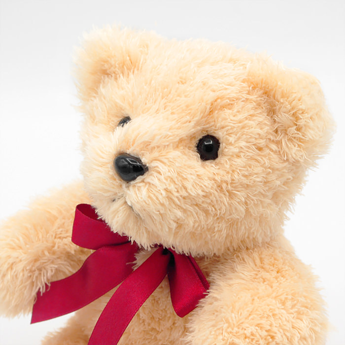素朴でかわいい顔、大きなリボンがキュートなテディベアと、オルゴールが一体型になったオルゴール付きぬいぐるみです。背中のつまみを回すと、オルゴールの温かな音色が流れます。曲目はジブリ映画「ハウルの動く城」より「人生のメリーゴーランド」。結婚式や誕生日・還暦などのお祝いの場面に、ロマンチックで美しいメロディーと共に、大切な気持ちを伝えます。