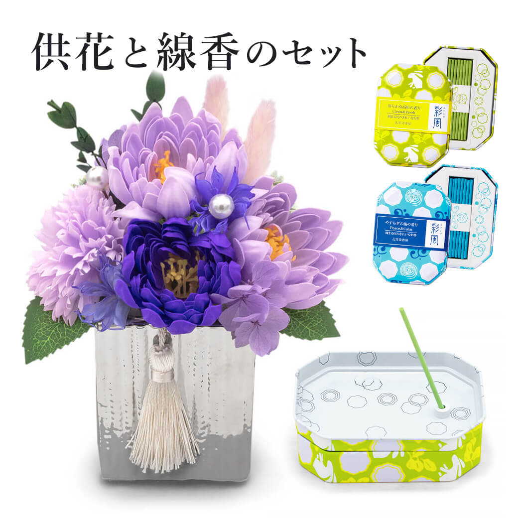 心を穏やかにするお供えフラワーとお線香のセット
