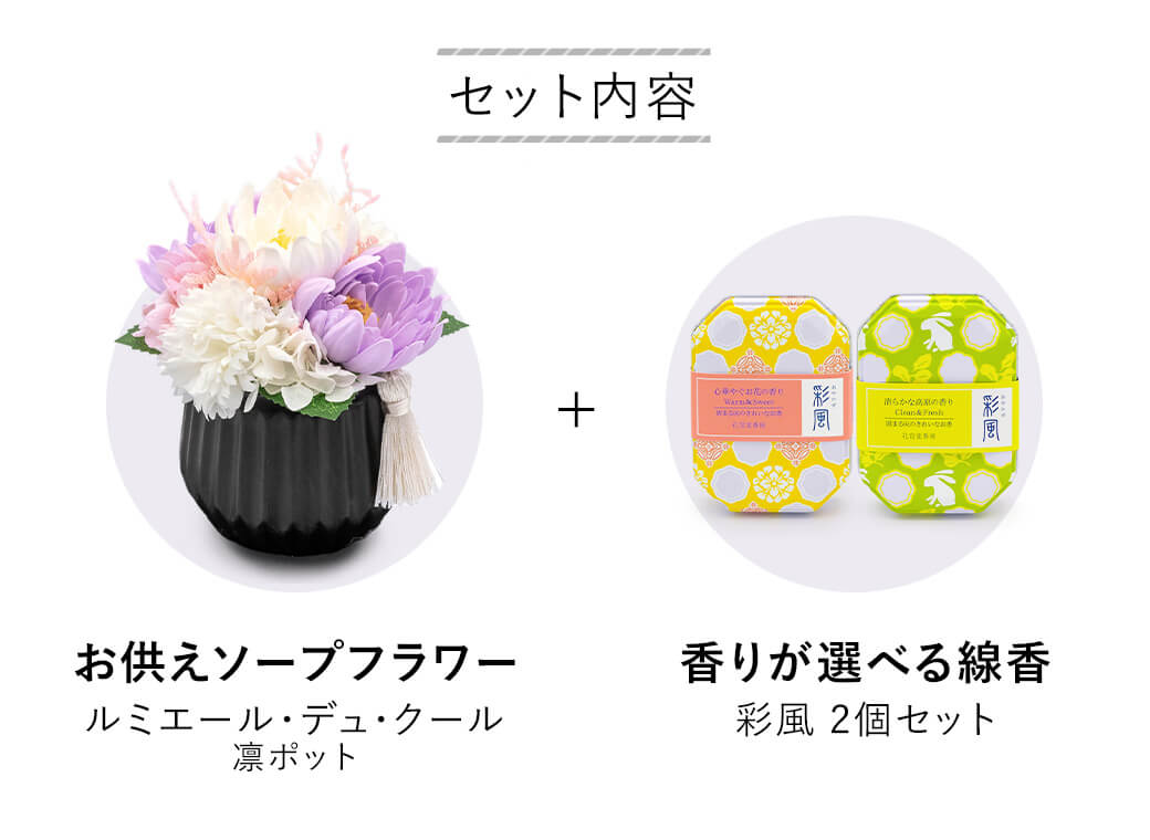 お供えソープ ルミエール・デュ・クール 凛ポット + 彩風「お花」と「海」の香りセット