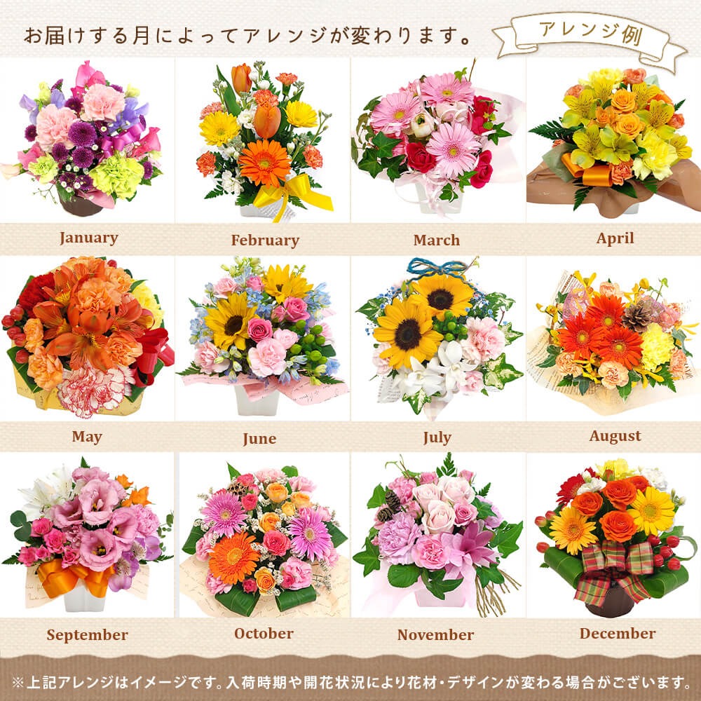お届け日により該当月のお花をお届けします。