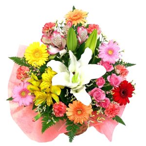 ユリと季節の花材を取り合わせたアレンジ仕上がりになります。