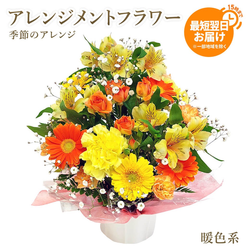 柔らかな色合いのピンク系の季節の花々をメインに使用し、華やかでありながら心温まるアレンジに仕上げました。特別な日を華やかに演出するアレンジメントフラワーは、女性の方やピンク色がお好きな方にはもちろん、お誕生日や記念日、お見舞いなど、どのようなシーンでも心に残る贈り物として喜ばれます。
