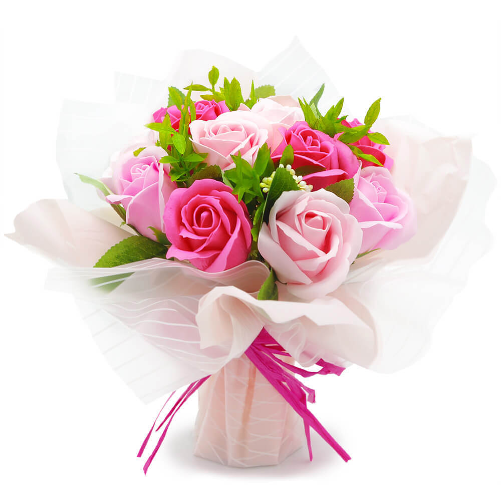 ピンク系のお花にグリーンがアクセントになったキュートで華やかな花束です。