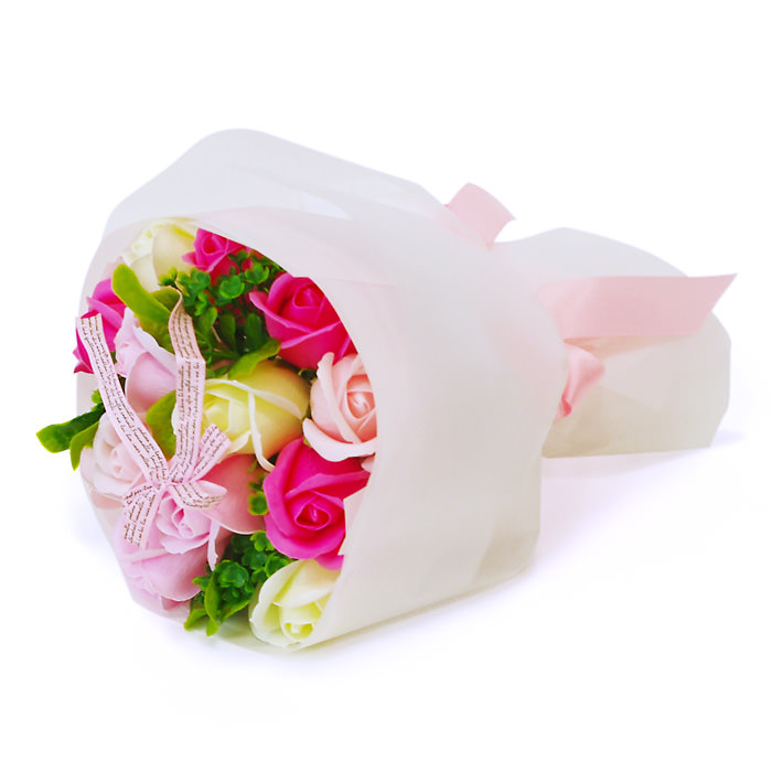 ピンクとホワイトの花にグリーンがアクセント