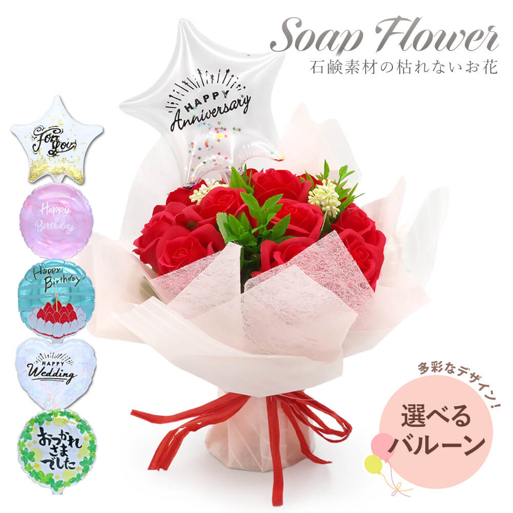 【バルーン電報】ソープフラワー ローズブーケ レッド
