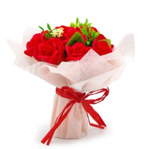ブーケの持ち手が平らになっていて自立するので、受け取ったままの状態でそのまま置いて飾っていただけます。