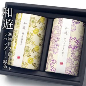御通夜・ご葬儀の弔電、法事法要・命日・喪中見舞い・初盆のお供えにおすすめの線香付き電報「線香 和遊 「ラベンダー」と「緑茶」の香り セット」