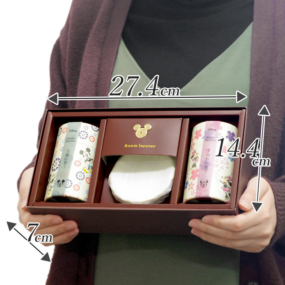 セット内容:ミッキーマウス 白檀の香り 1函、ミニーマウス すみれの香り 1函、ディズニー/インセンスホルダー 1個、香皿 1個、メッセージカード 1枚