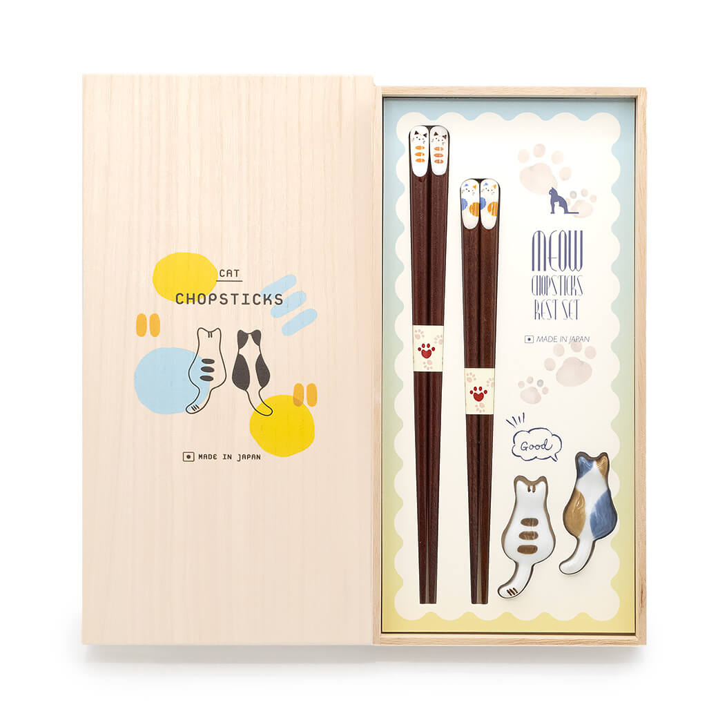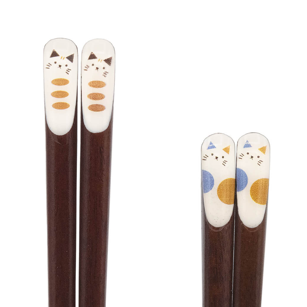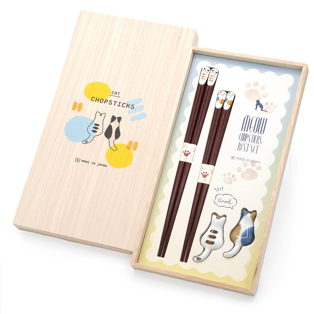 漆塗装を施した日本製のお箸は、若狭塗の伝統技法を受け継ぐメーカーが手がけた確かな品質。手に馴染みやすく、毎日の食事を心地よく彩ります。結婚祝いや結婚記念日、新生活のお祝いはもちろん、猫飼いさんや猫好きなご夫婦・ご両親への贈り物にもおすすめ。