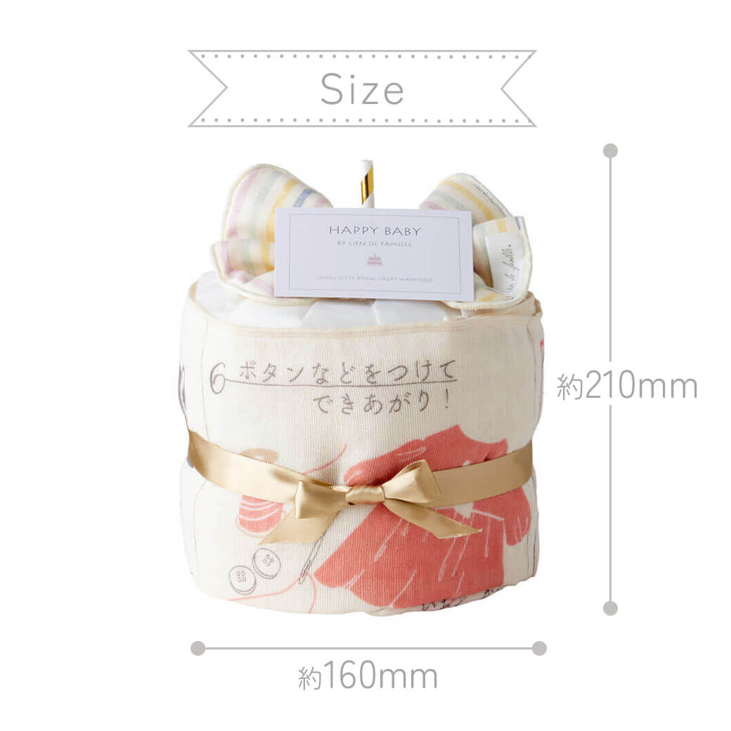 サイズ:本体サイズ:高さ約210mm×幅約160mm×奥行約160mm/絵本タオル:340mm×800mm/おむつ:Sサイズ
