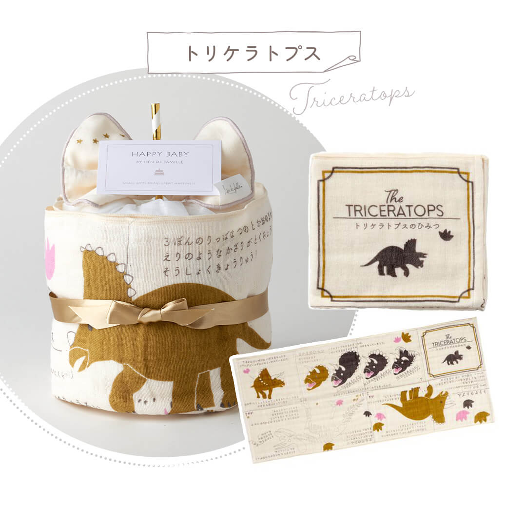 恐竜絵本タオルのベビーケーキ トリケラトプス