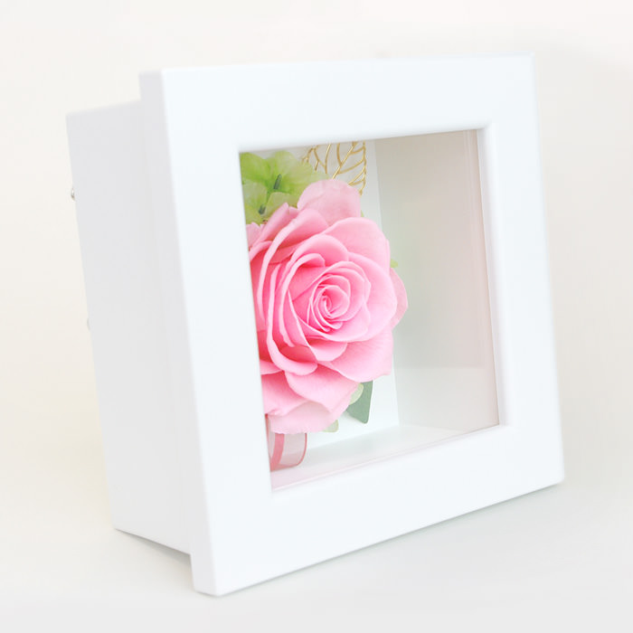 白フレームの中に咲いたかわいらしいバラ