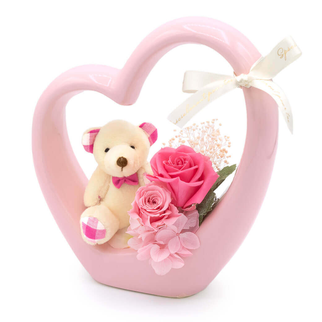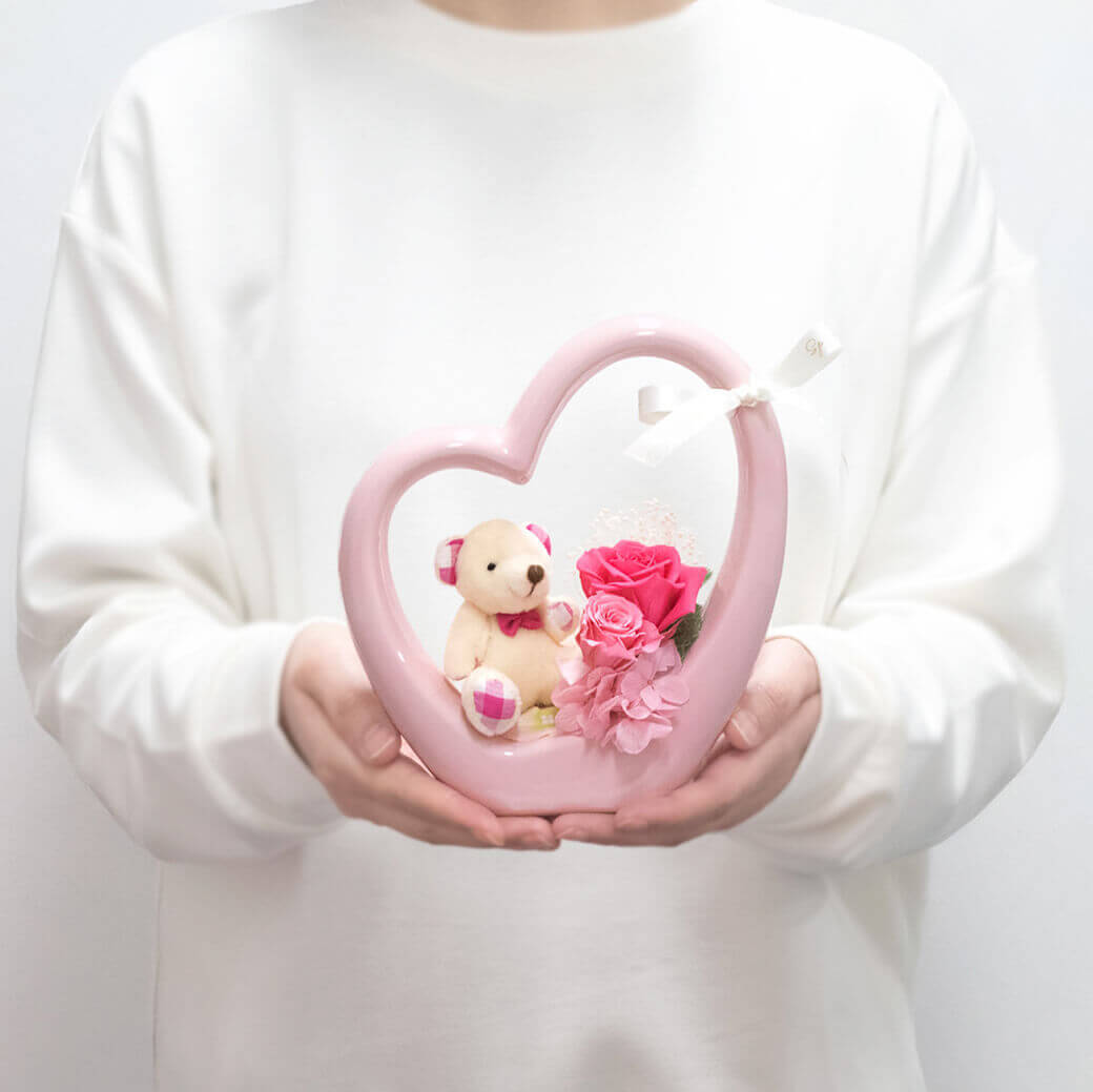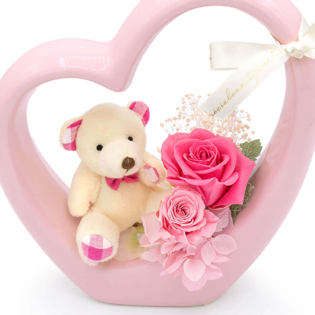 「クマ×プリザーブドフラワー」ときめくハート型ギフト