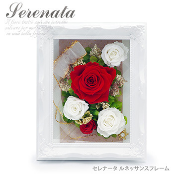 結婚祝い・記念日の祝電プレゼントにオススメのプリザーブドフラワー電報【セレナータ ルネッサンスフレーム】
