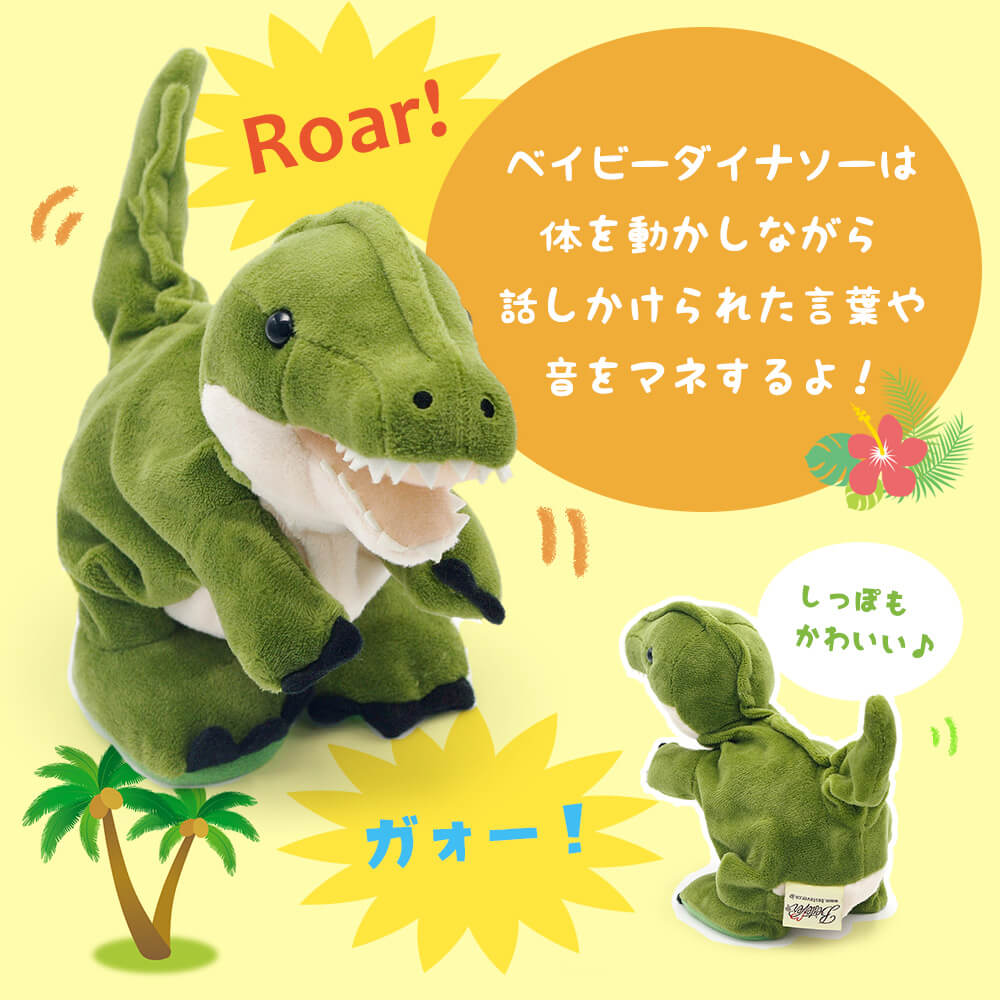 • ベイビーダイナソーは、話しかけると体を動かしてモノマネする恐竜のぬいぐるみです