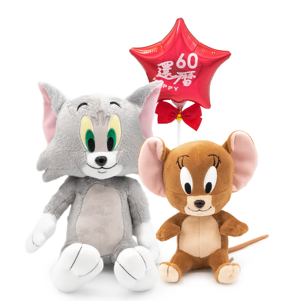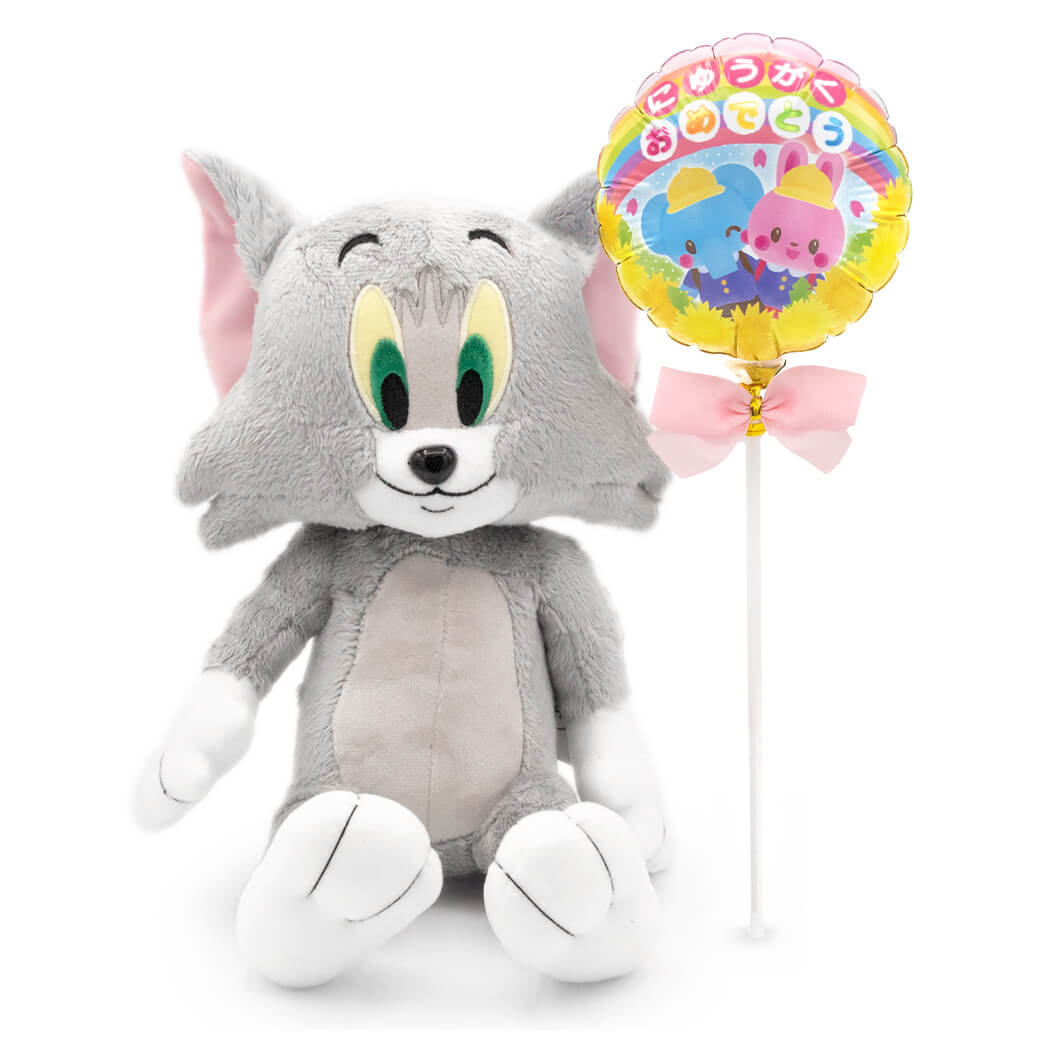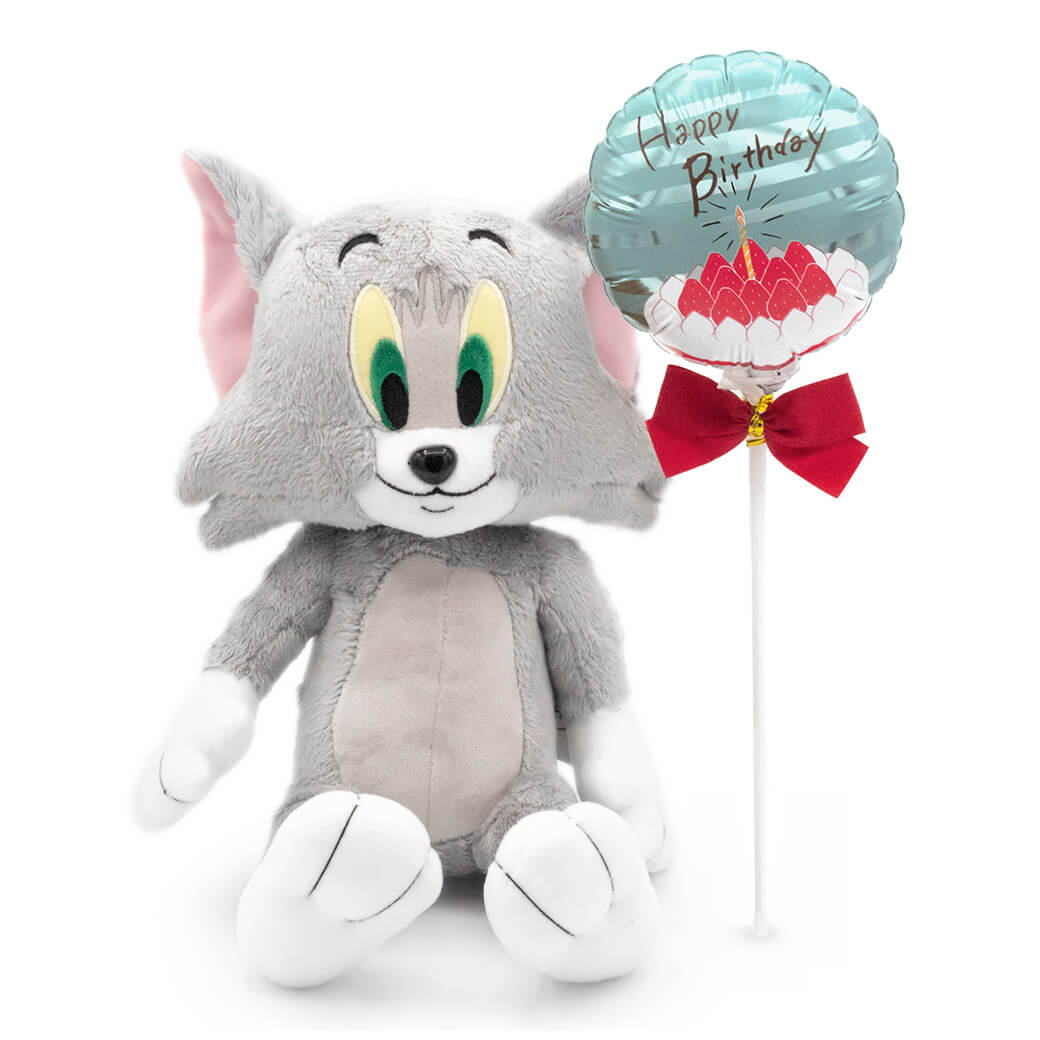 人気アニメ「トムとジェリー」に登場するお調子者の猫、トムのぬいぐるみと、スティックバルーンがセットになったギフトです。