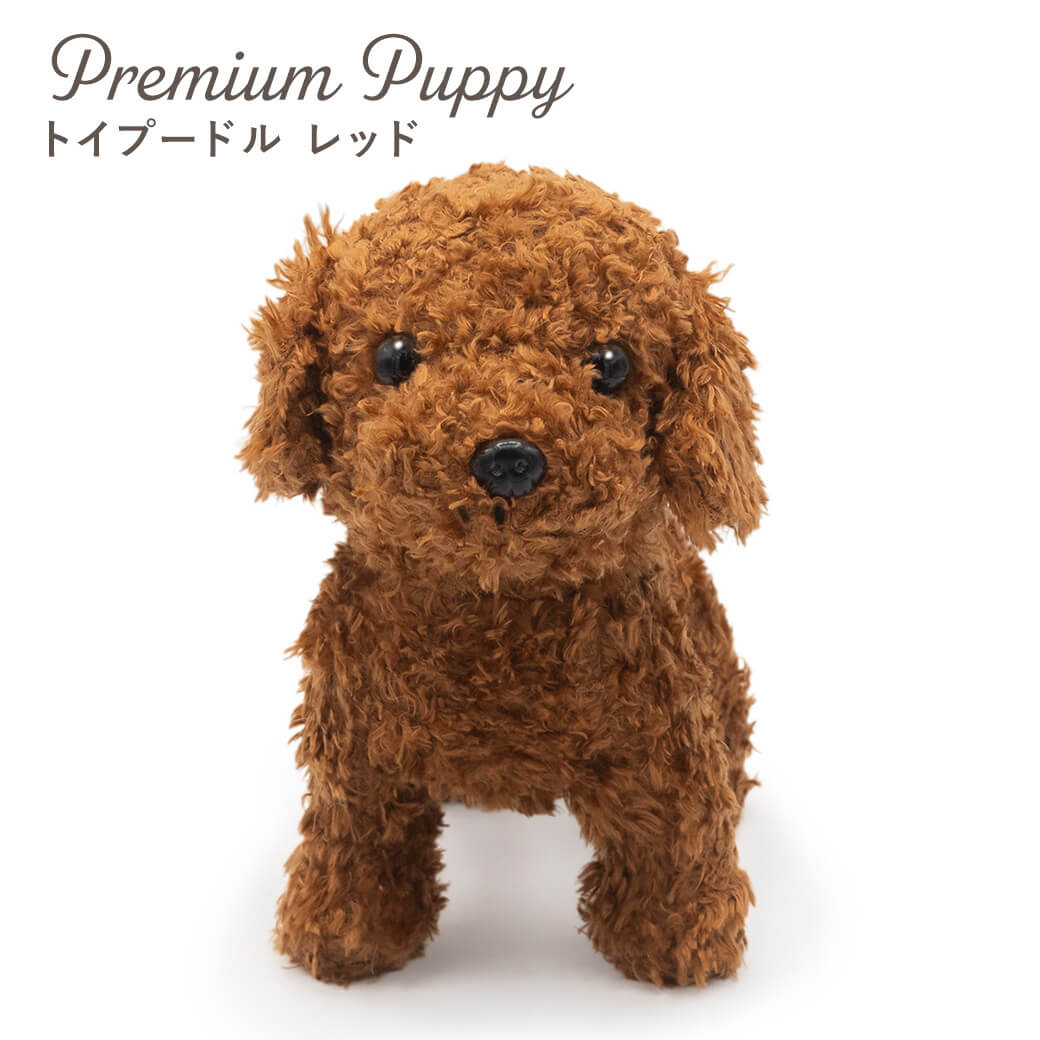 丁寧な仕上がりが魅力の〈プレミアムパピー〉シリーズから、トイプードル(レッド)のぬいぐるみです。