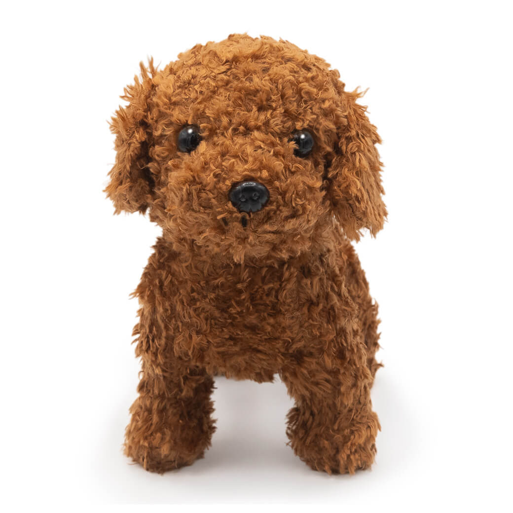 トイプードルらしい柔らかな毛並みや愛らしい表情、耳やしっぽの丸みなど細部までこだわって作られています。見つめる瞳はまるで本物のようで、そっと心を癒してくれます。