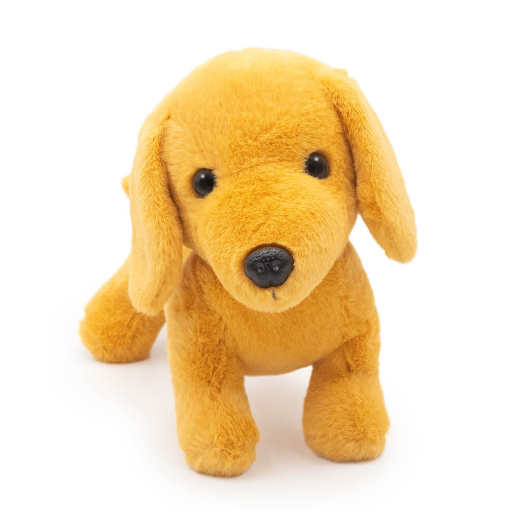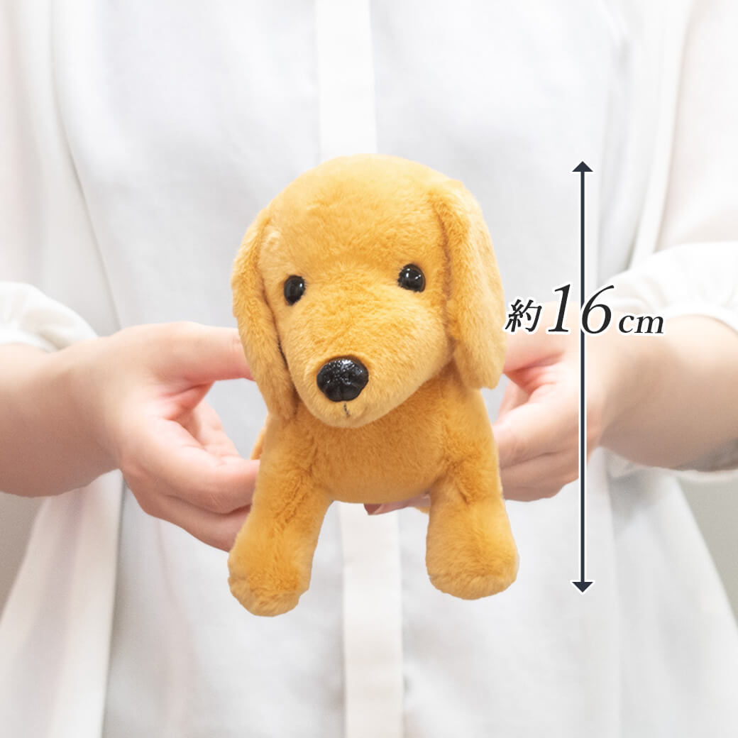 明るいブラウンの毛並みやつぶらな瞳、ぽてっとした丸みや長い胴体など細部までこだわって作られています。ふわふわの手触りは本物のようで、そっと心を癒してくれます。