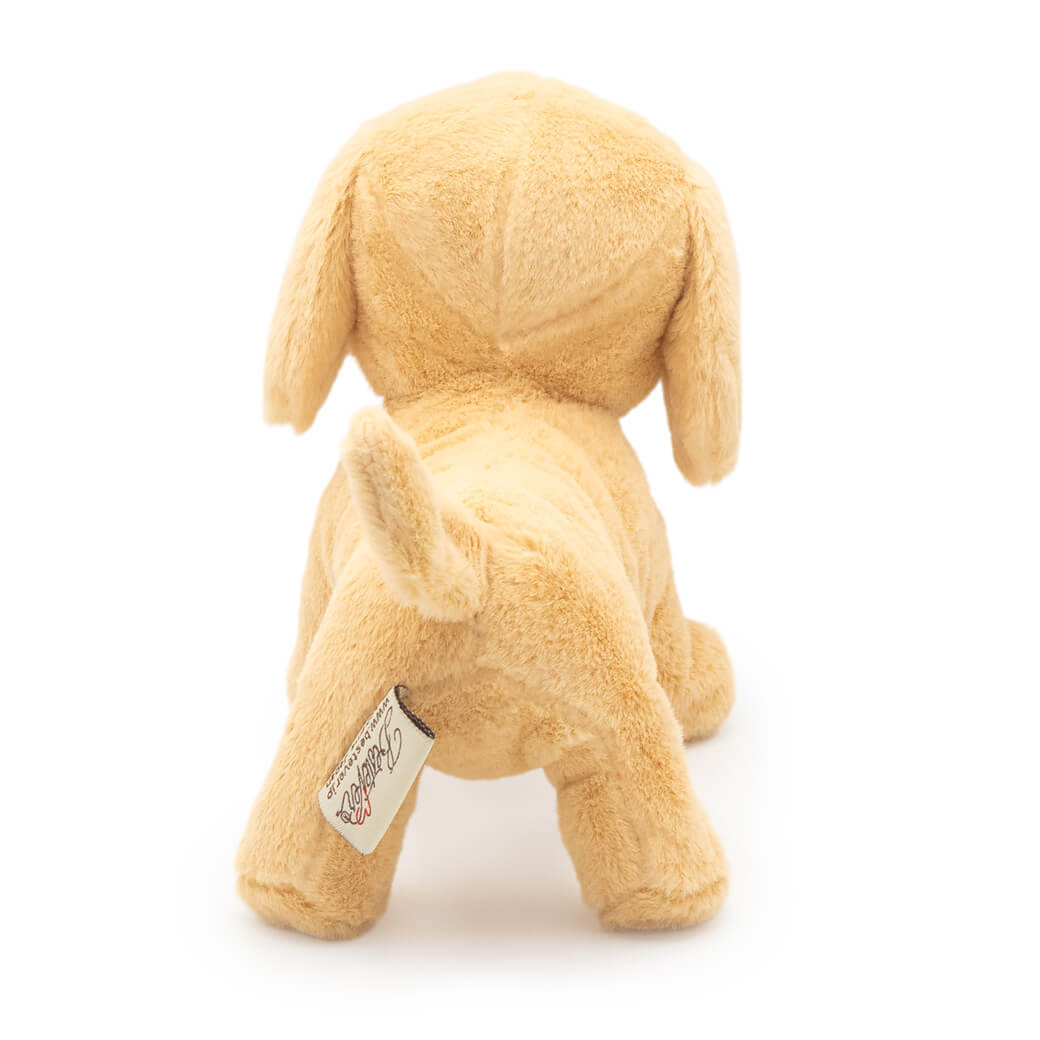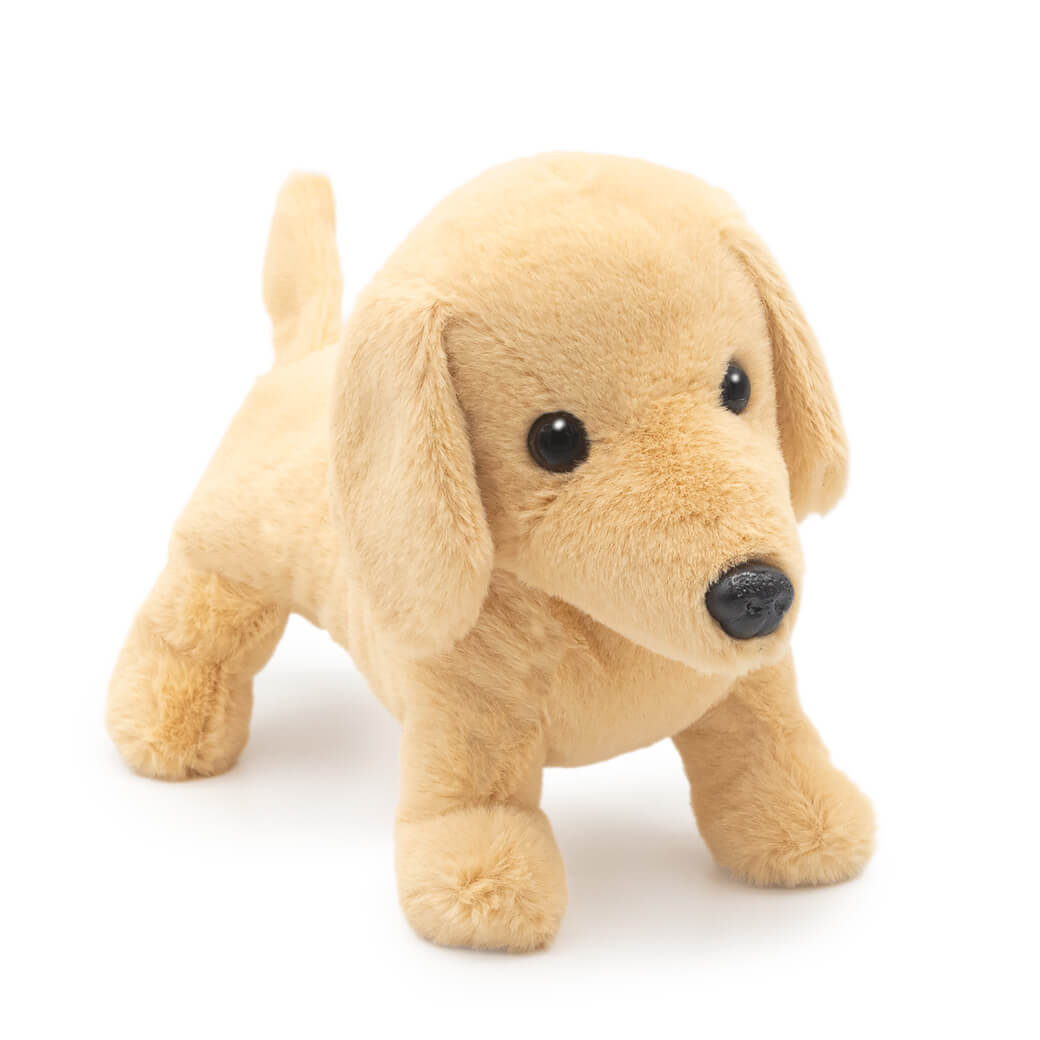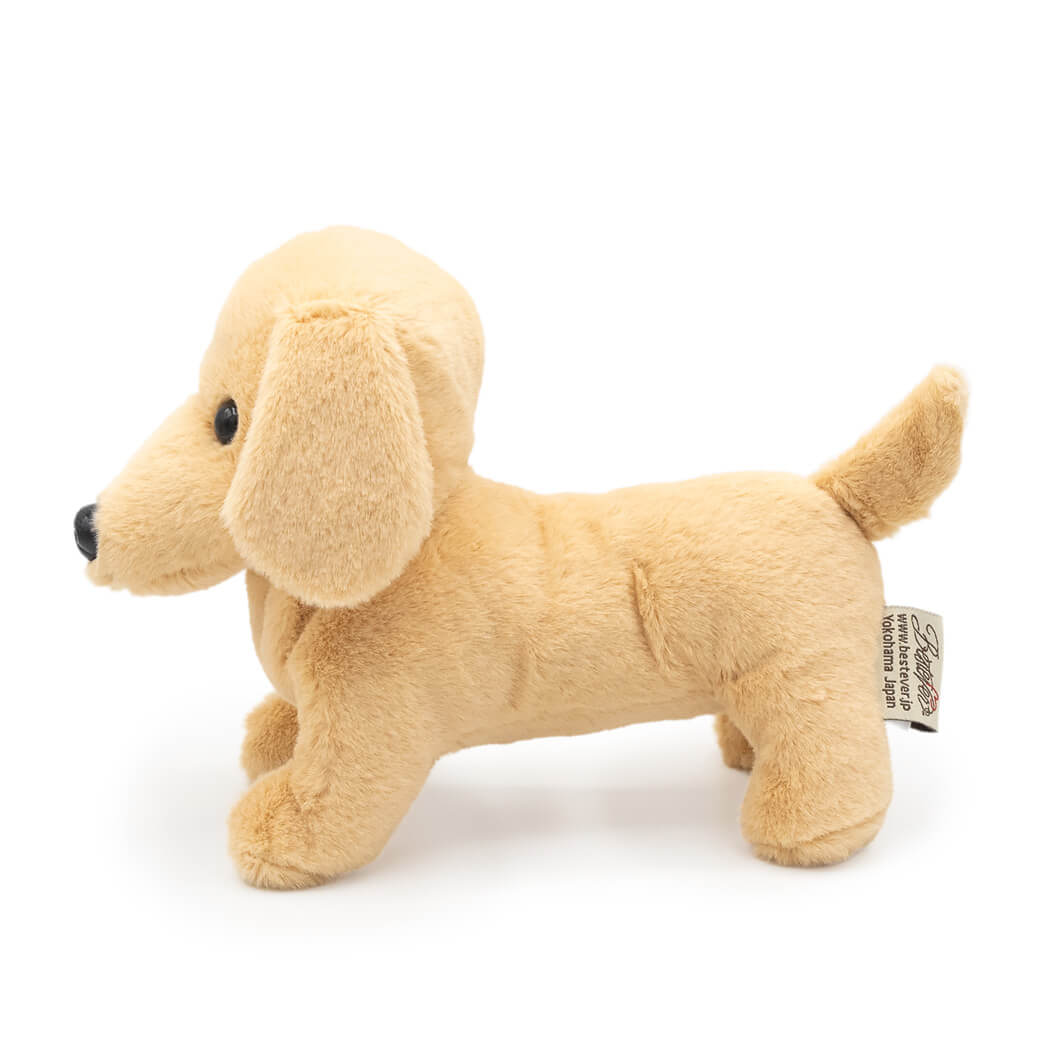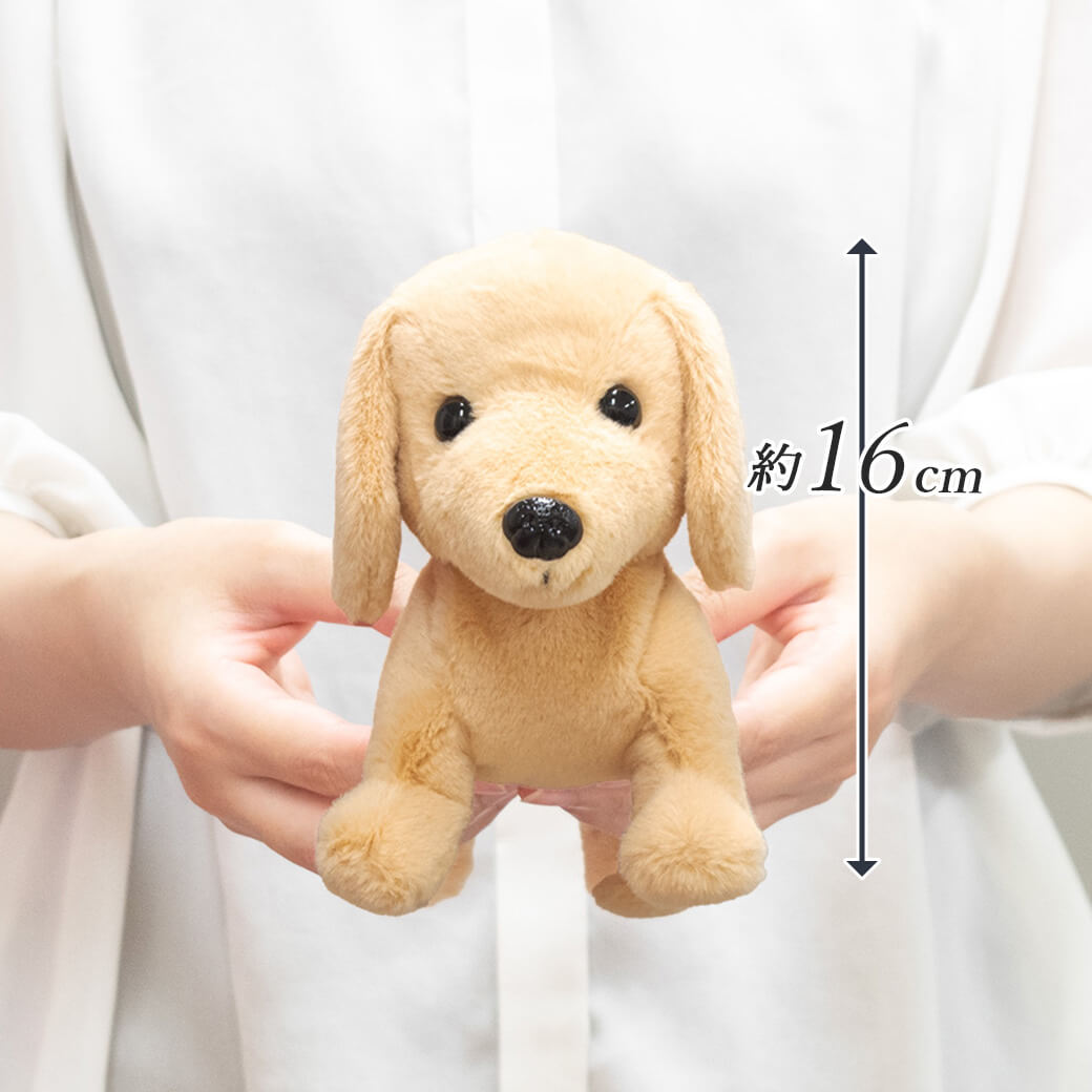 上品なベージュの毛並みやつぶらな瞳、ぽてっとした丸みや長い胴体など細部までこだわって作られています。ふわふわの手触りは本物のようで、そっと心を癒してくれます。