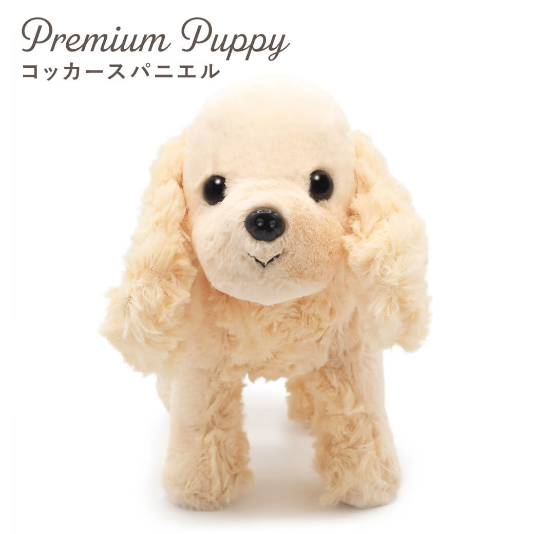 丁寧な仕上がりが魅力の〈プレミアムパピー〉シリーズから、コッカースパニエルのぬいぐるみです。