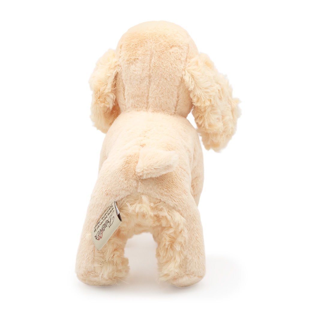 ふんわり柔らかく垂れた耳や愛らしい表情、上品なベージュの毛並みなど細部までこだわって作られています。ふわふわの手触りは本物のようで、そっと心を癒してくれます。