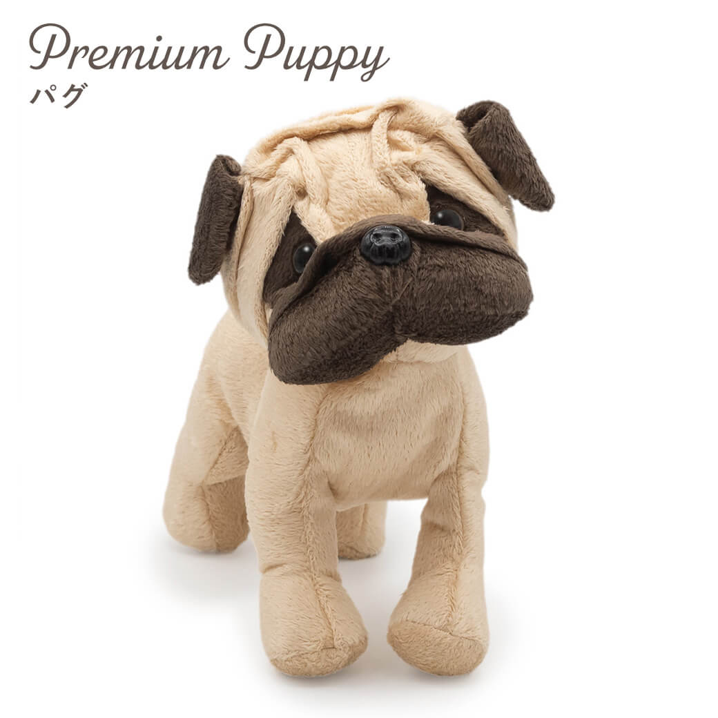 丁寧な仕上がりが魅力の〈プレミアムパピー〉シリーズから、パグのぬいぐるみです。