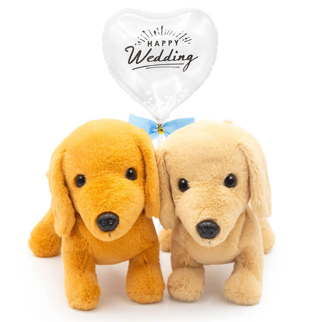 ペアセットのぬいぐるみは、結婚式の祝電ギフトやウェルカムドール、結婚記念日などのお祝いに人気です。バルーンは入学祝いや母の日など多彩なデザインから選べるので、お祝いのシーンにぴったりの組み合わせを楽しめます。犬好きさんや、ペットと暮らす方へのプレゼントにバルーンを添えれば、記念日のお祝いをさらに華やかにしてくれるでしょう。