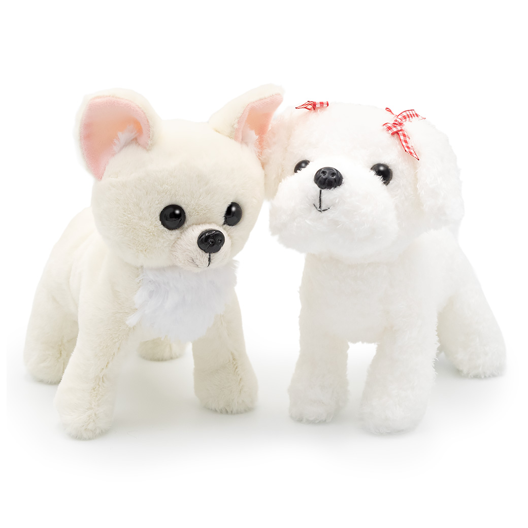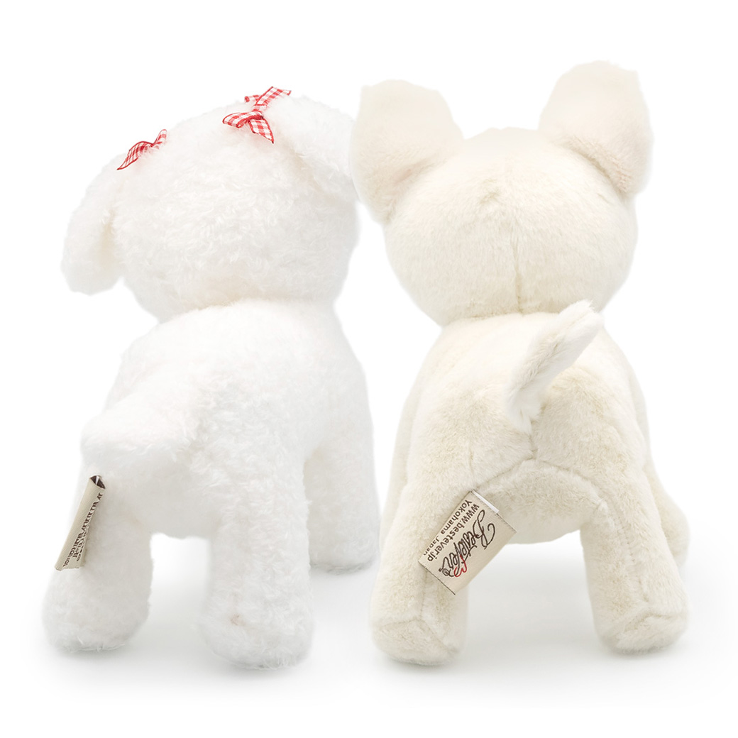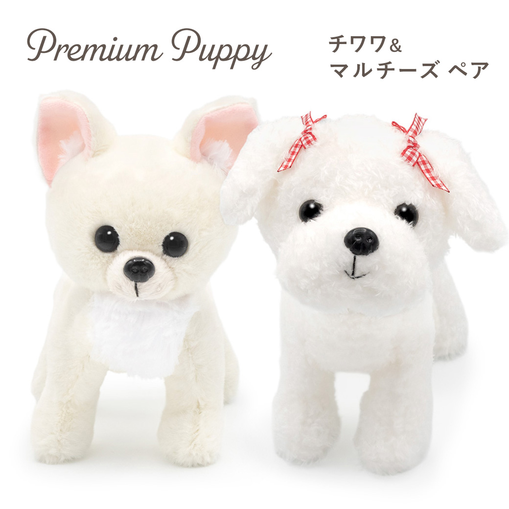 丁寧な仕上がりが魅力のぬいぐるみ〈プレミアムパピー〉シリーズから、チワワとマルチーズのペアセットです。もこもこの毛並みや、ぴんと立った耳など細部までこだわって作られています。柔らかな手触りは本物のようで、そっと心を癒してくれる上品な仕上がりです。小さくてキュートな二匹の組み合わせは、犬好きさんや、ペットと暮らす方へのプレゼントにぴったり♪ペアセットのぬいぐるみは、結婚式の祝電ギフトやウェルカムスペースの飾り、犬好きなご夫婦への贈り物にもおすすめ。
