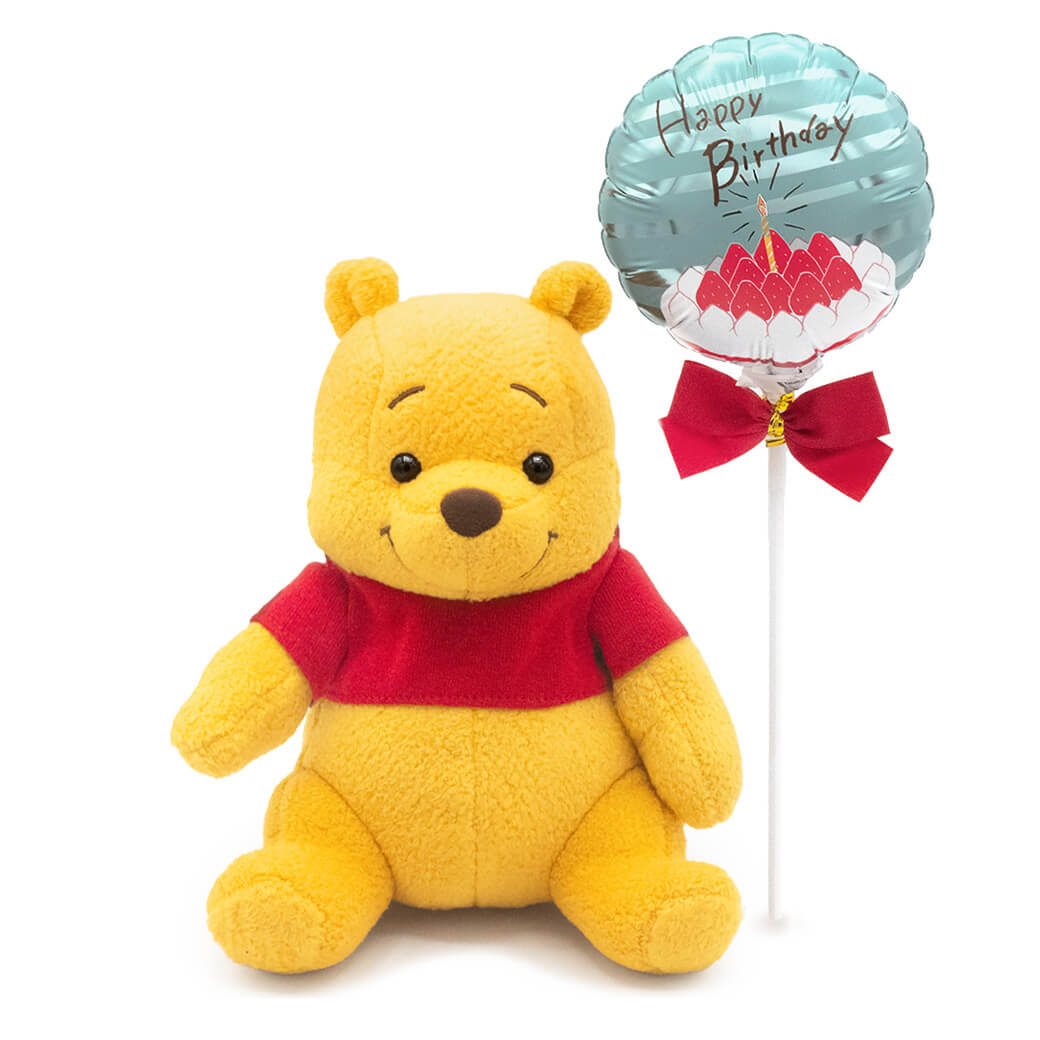 小説やアニメ、ディズニー作品でも大人気「くまのプーさん」のぬいぐるみと、スティックバルーンがセットになったギフトです。