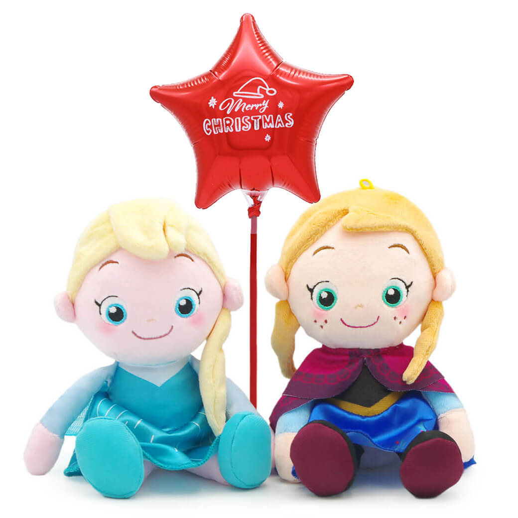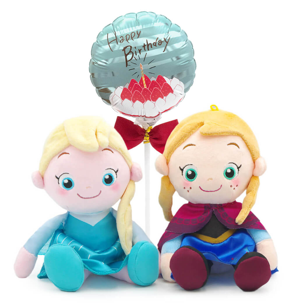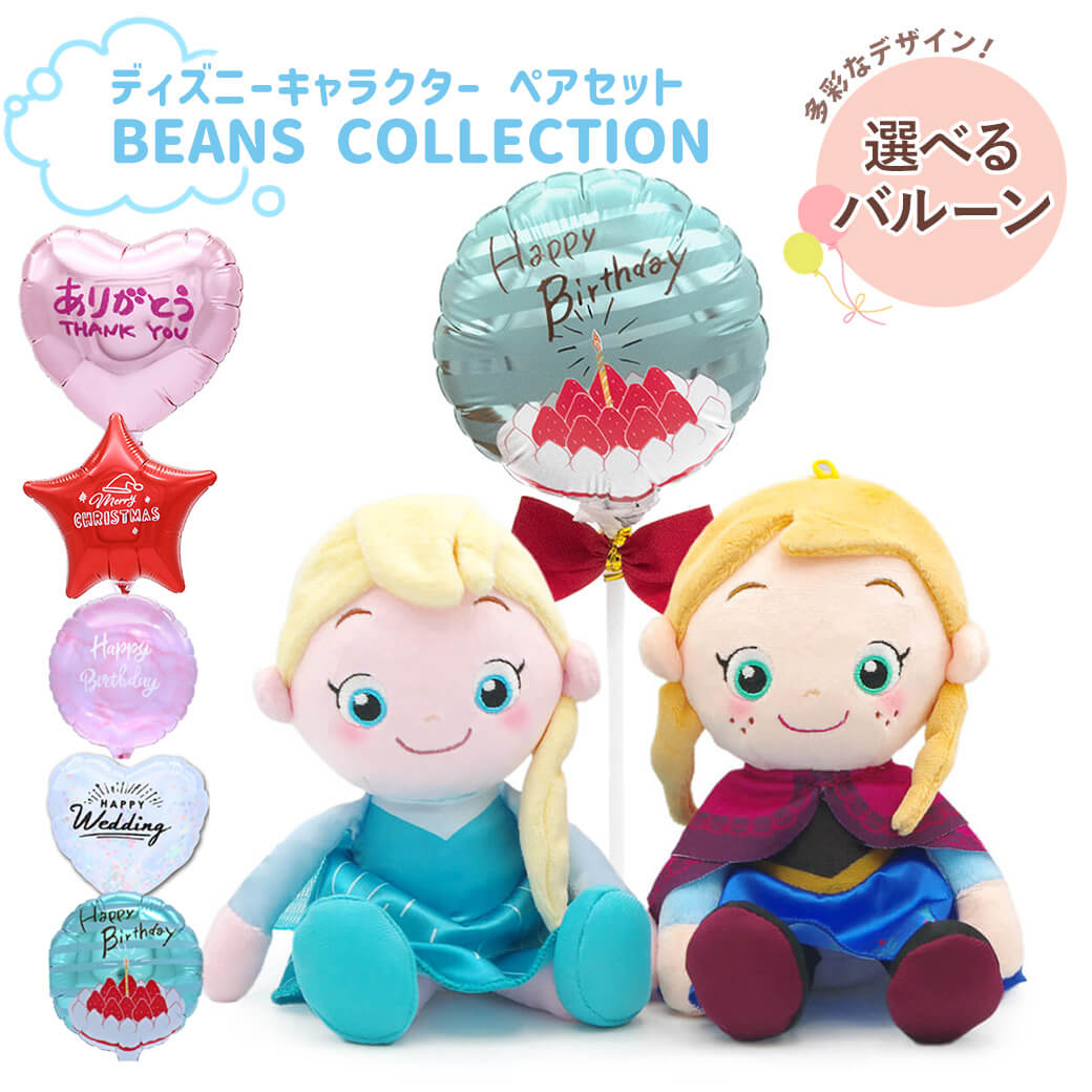 【バルーン電報】ディズニーキャラクター 洗えるビーンズコレクション エルサ&アナ ペア