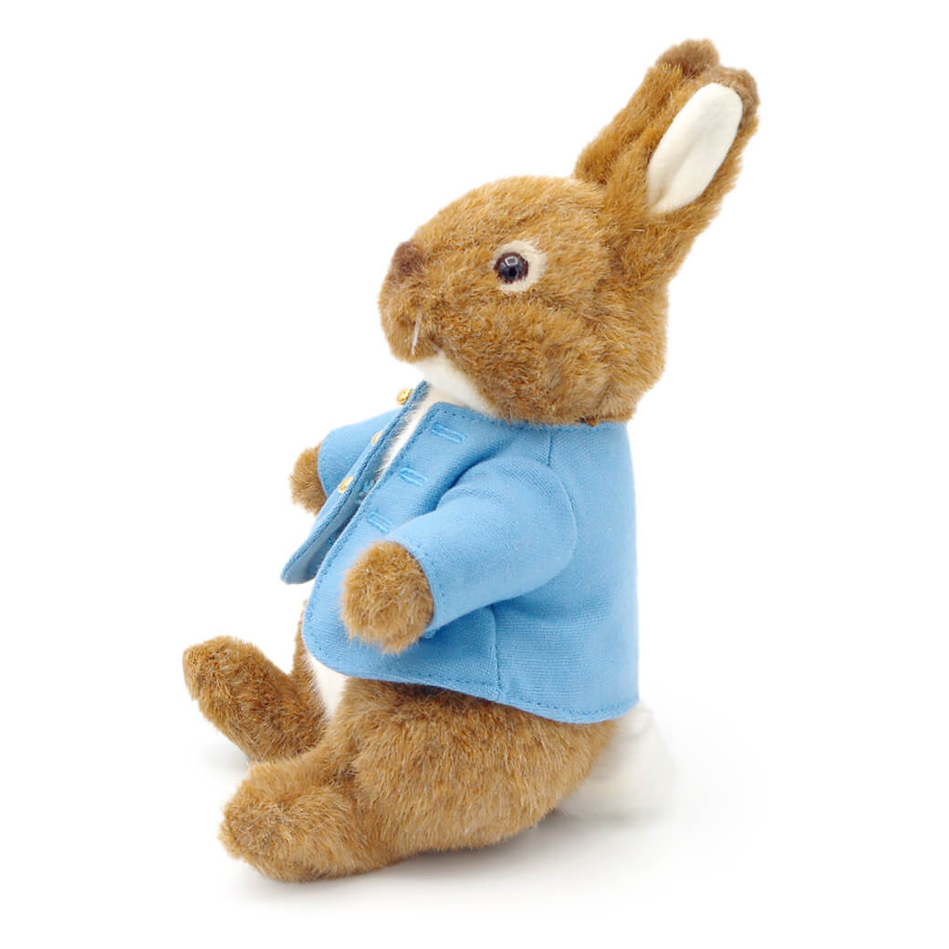 まるでビアトリクス・ポターの描く絵本から飛び出してきたような、愛らしいピーターラビットのぬいぐるみです。ピーターは元気でいたずら好きの仔うさぎです。細やかな毛並みはあたたかな触り心地で、ブルーの上着や金のボタンなど繊細に作りこまれています。