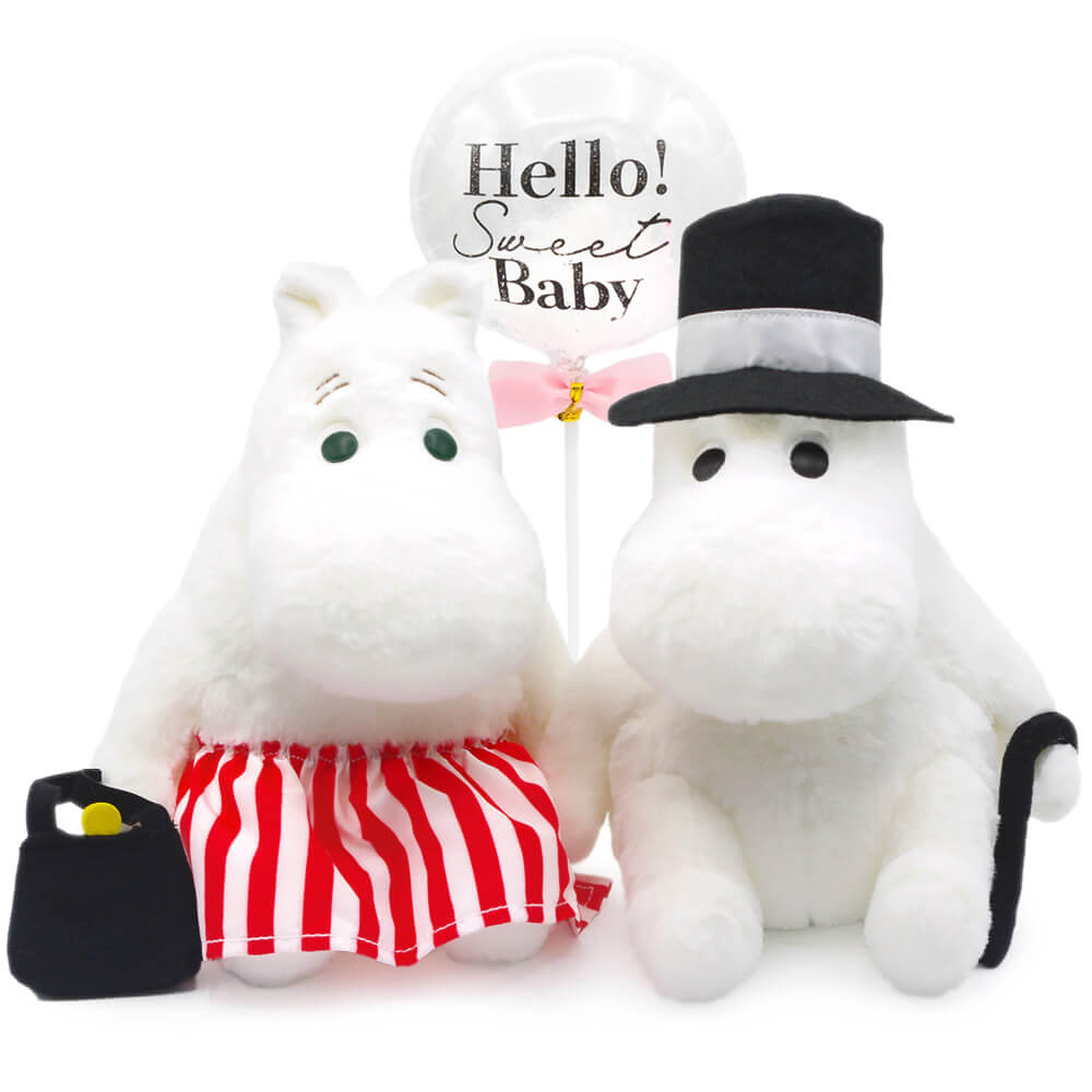 小説やアニメで大人気!北欧の人気シリーズ「ムーミン」に登場するムーミンパパとムーミンママのペアぬいぐるみと、スティックバルーンがセットになったギフトです。