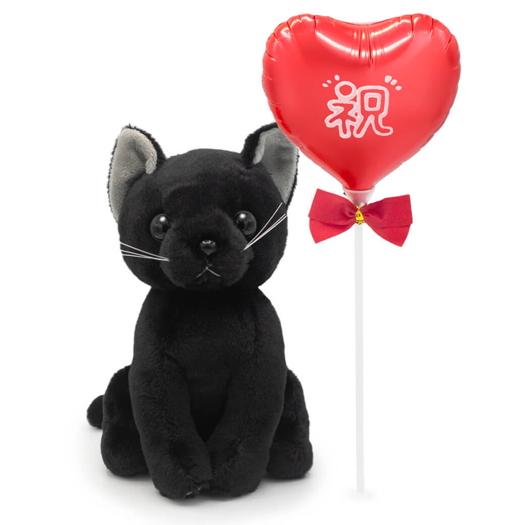 バルーン付き!キュートな黒猫のぬいぐるみ