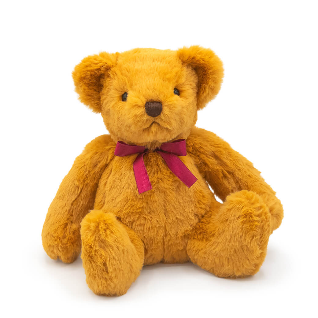 素朴でかわいい顔、大きなリボンがキュートなテディベアと、オルゴールが一体型になったオルゴール付きぬいぐるみです。背中のつまみを回すと、オルゴールの温かな音色が流れます。曲目はジブリ映画「ハウルの動く城」より「人生のメリーゴーランド」。結婚式や誕生日・還暦などのお祝いの場面に、ロマンチックで美しいメロディーと共に、大切な気持ちを伝えます。