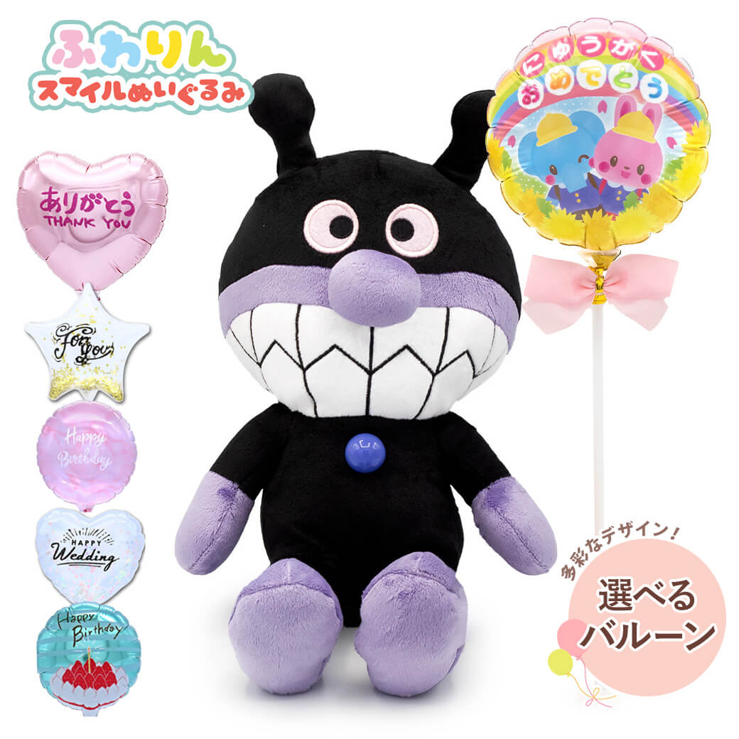 【バルーン電報】ばいきんまん ふわりんスマイルぬいぐるみSplus