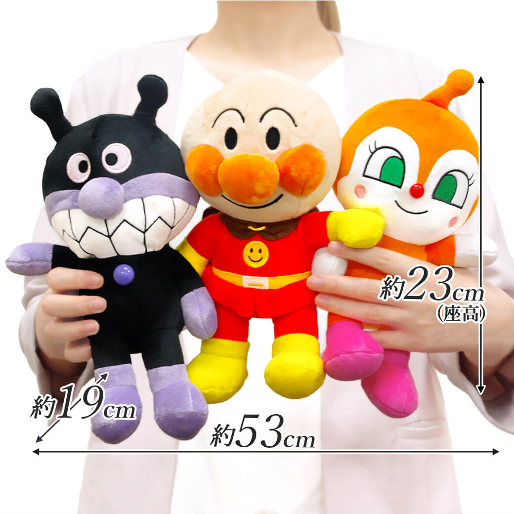 アニメ・絵本で大人気「アンパンマン」シリーズの世界が十二分に楽しめるぬいぐるみセットが新登場!心優しい正義のヒーロー アンパンマンと、お茶目な悪役ばいきんまん、おてんばでちょっぴりわがままなドキンちゃんのトリオセットです。