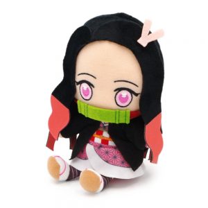 ピンク色のまるい瞳やぼんやりした表情、麻の葉模様の着物から飛び出した足がかわいい禰豆子ぬいぐるみ